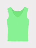 I was never wearing this on its own as I haven't done sleeveless for years as I don't find the look flattering and the climate in the north too cold. But AI have this top in two fabulous colours and love them simply because of the double material and the lack of sleeves, and that they are great as a layering item under a faux crossover top or an open Shelley wrap. Negotiating two lots of sleeves can be bulky and awkward. Sick of the usual camisole 'uniform' and so the boat neck in the autumn is very attractive, and the V neck is the same as any other V neck, and a pop of colour and an appropriate necklace. It is also very attractive to wear with a belt either way and to ruche any spare material. Given it is double material, it comes in at a reasonae price and not this see-through scenario.